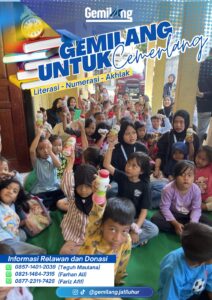 Tuturan.com- Komunitas Gerakan mendidik dengan ilmu dan akhlak cemerlang (Gemilang) adalah komunitas yang berisi para remaja yang peduli dalam dunia pendidikan.
