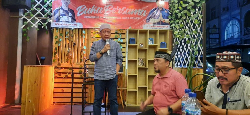 Miing Bagito, pelawak senior yang pernah aktif di Komisi 10 DPR RI lalu menyampaikan banyak motivasinya. “Di komisi 10 saya termasuk membidangi pemuda dan olahraga, saya bangga atlit futsal kota Bekasi mau bukber disini.”, kata Miing di awal sambutannya.